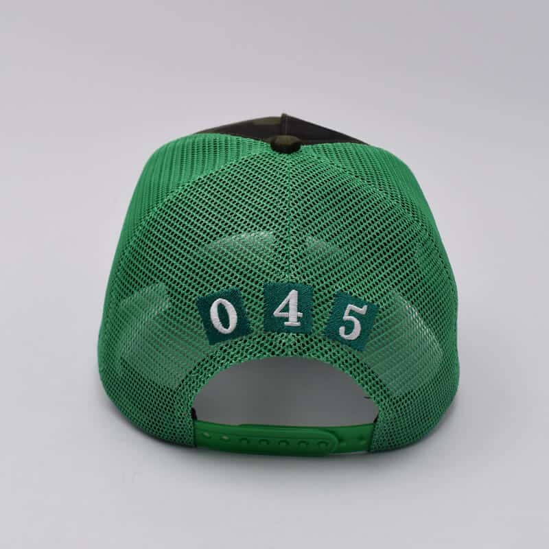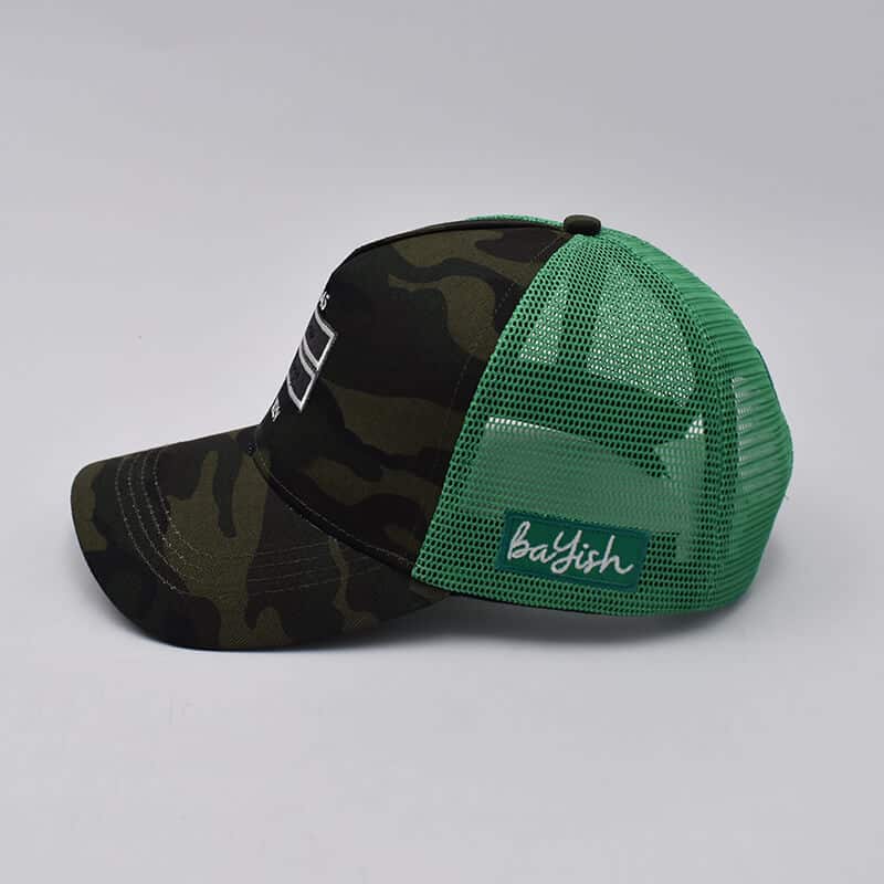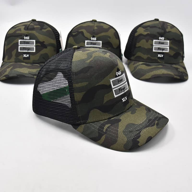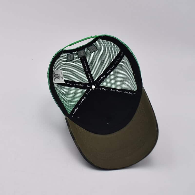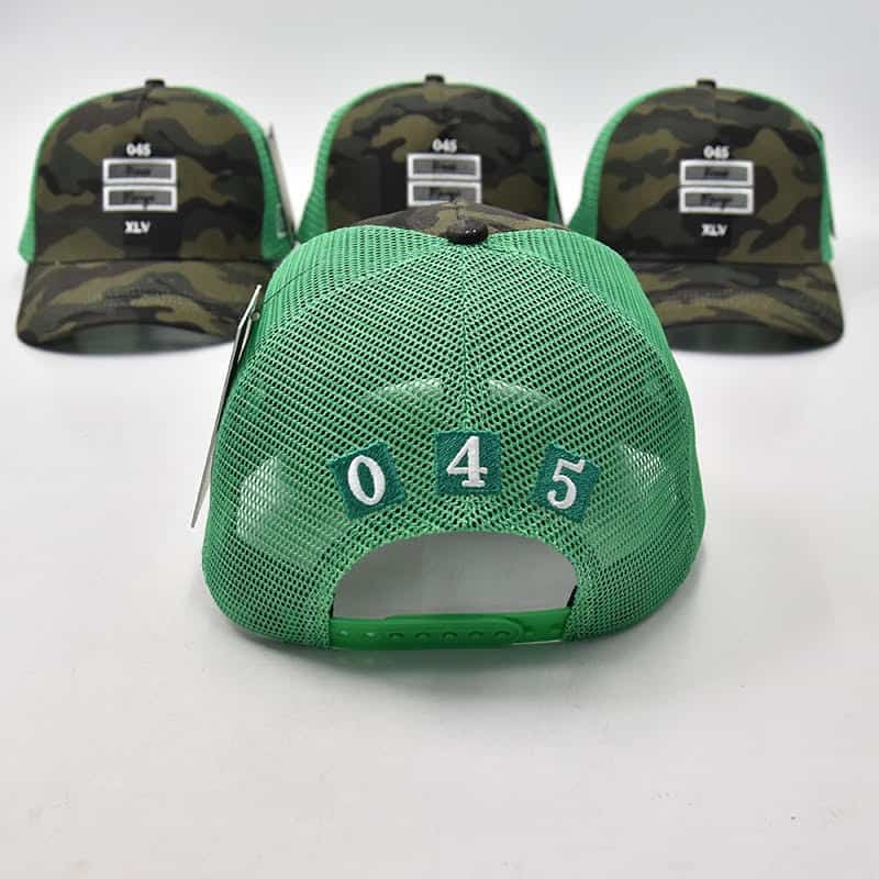 Authentic suede with 3D embroidery and flat embroidery with 100% nylon mesh and 100% cotton as well.